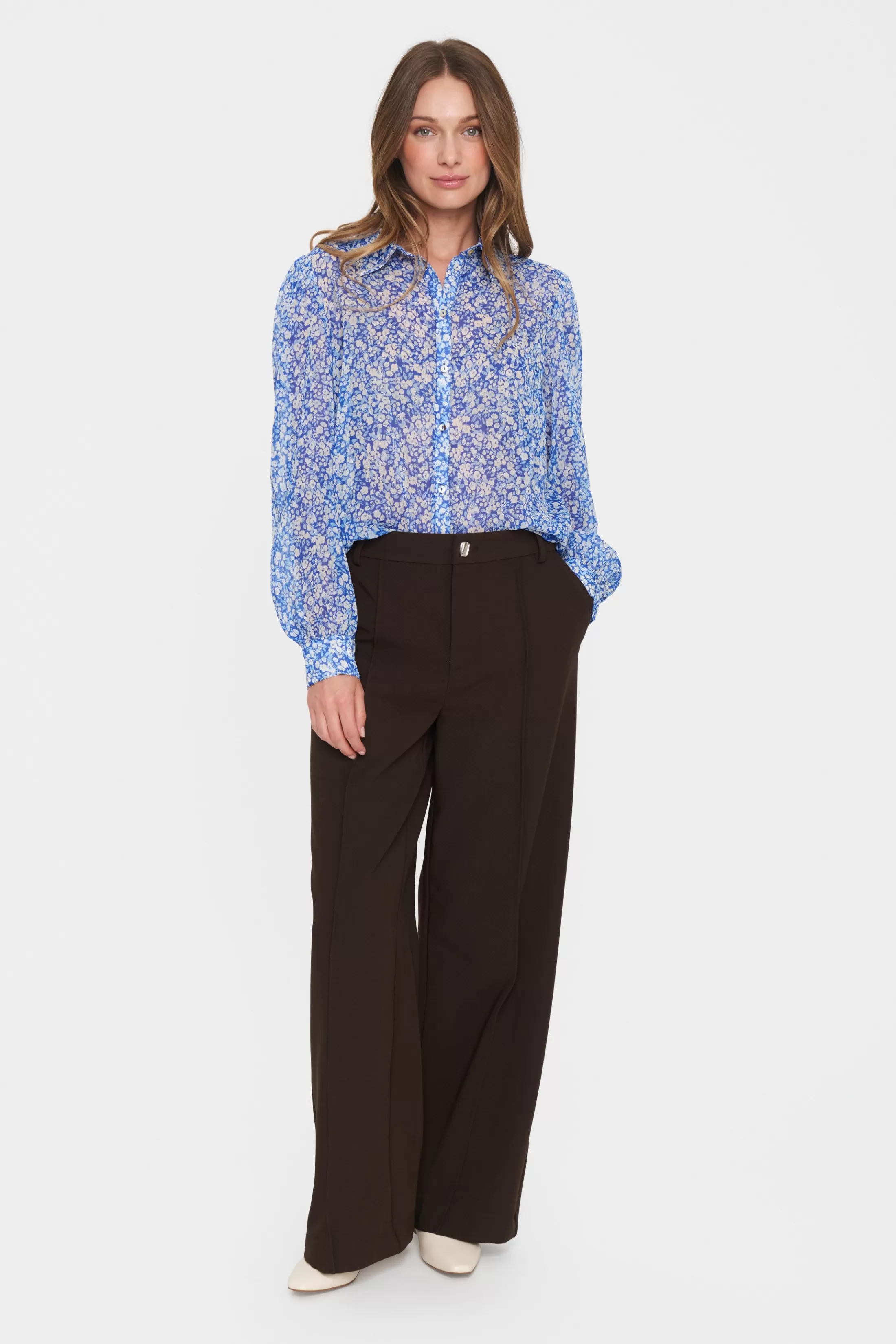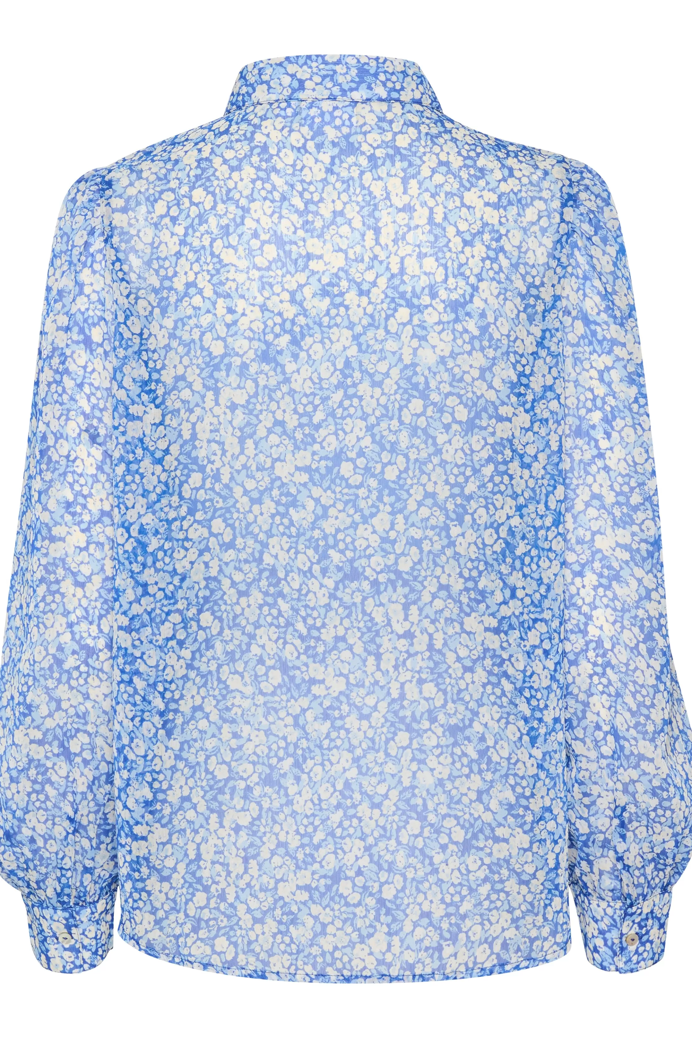 Smuk blomsteret skjorte med ballonærmer, skjortekrave samt knaplukning. nnModellen er 176 cm høj og er iført en str. M