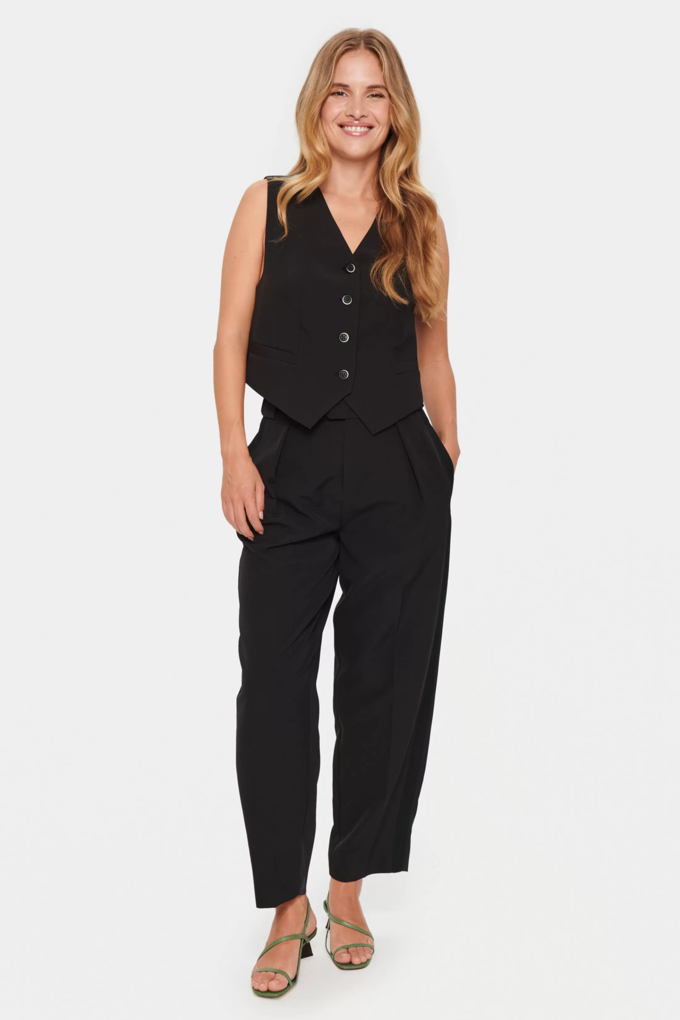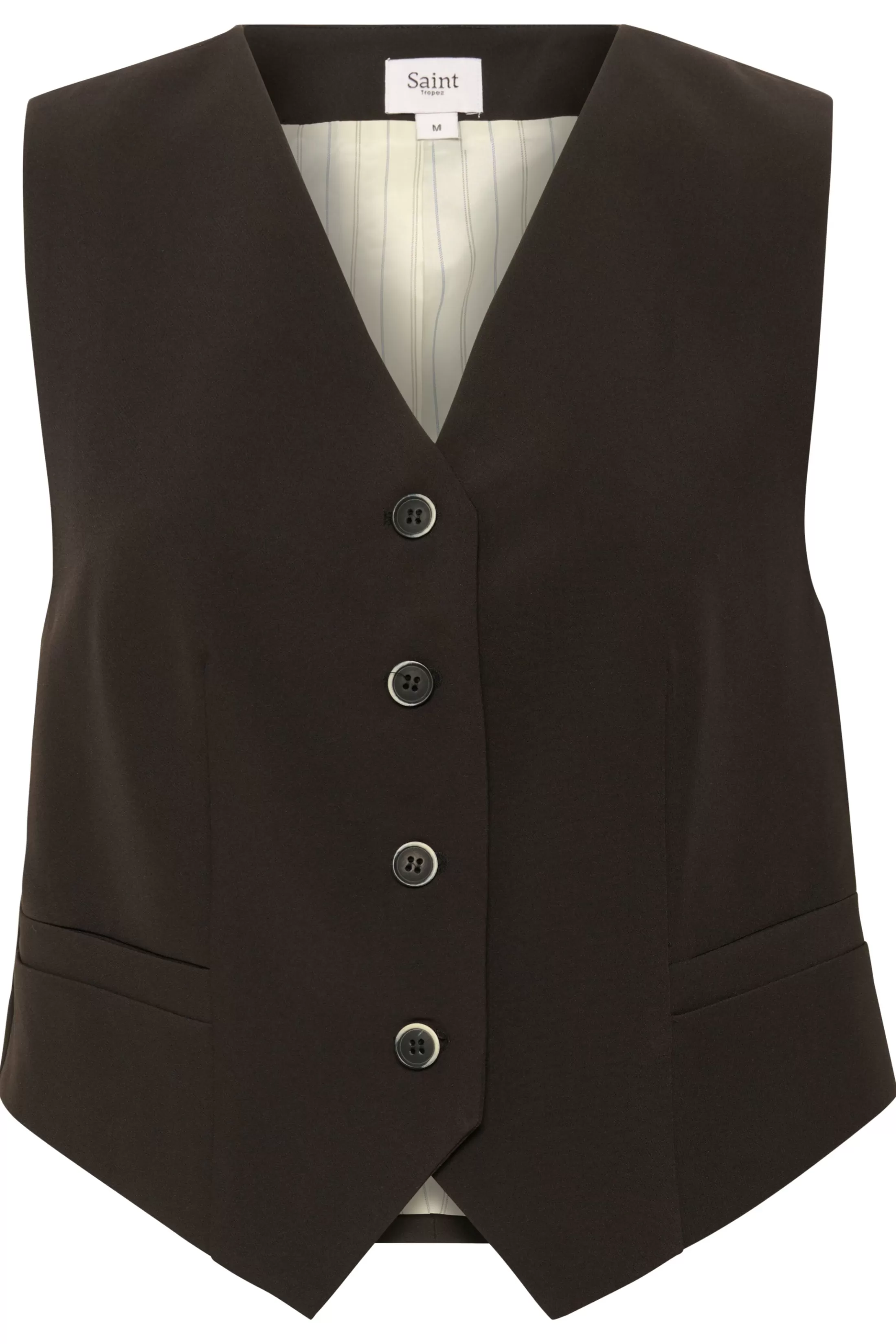 Kort suitvest med V-udskæring, dekorative knapper, samt paspolerede snydelommer. nnModellen er 179 cm og er iført en størrelse M.