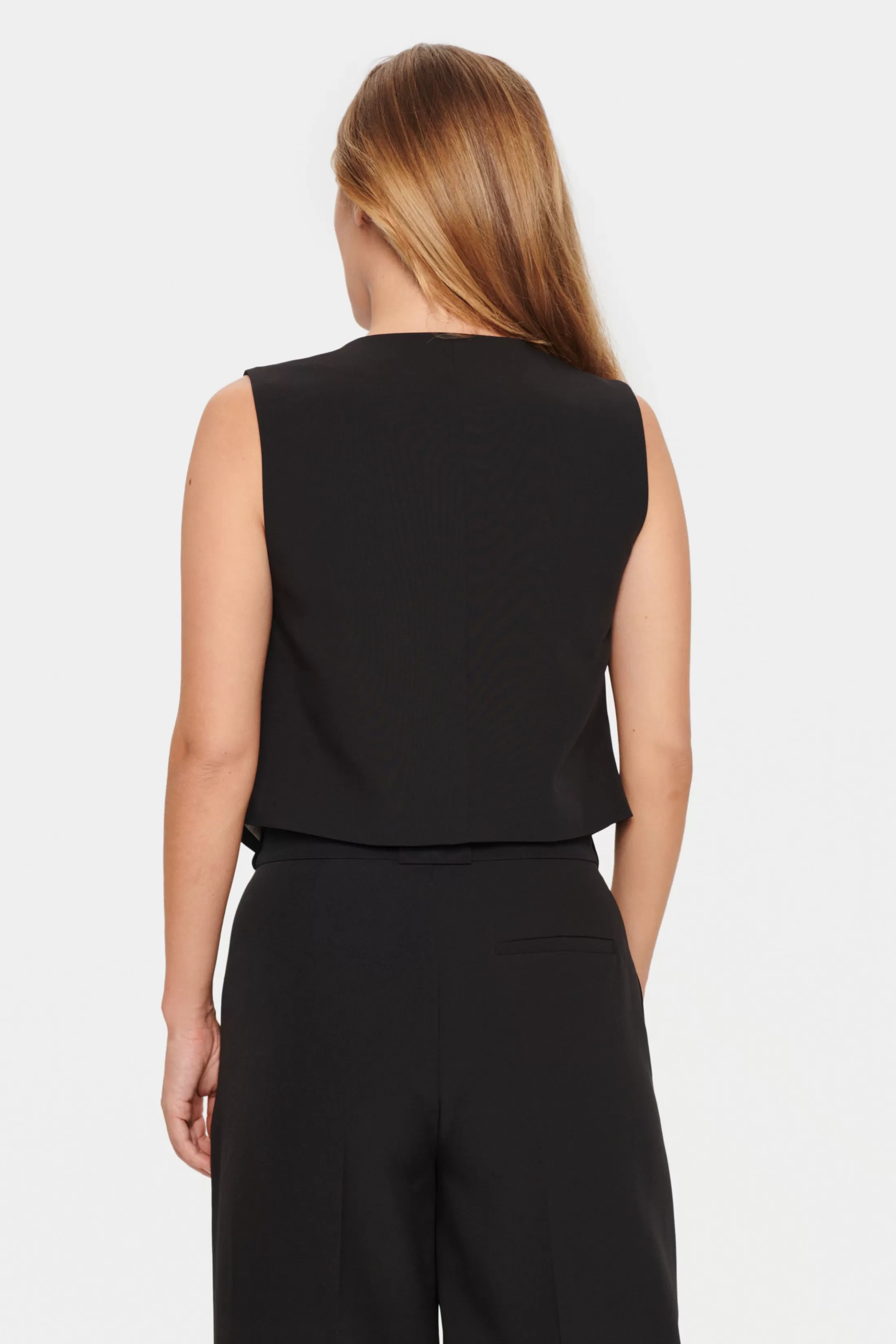 Kort suitvest med V-udskæring, dekorative knapper, samt paspolerede snydelommer. nnModellen er 179 cm og er iført en…