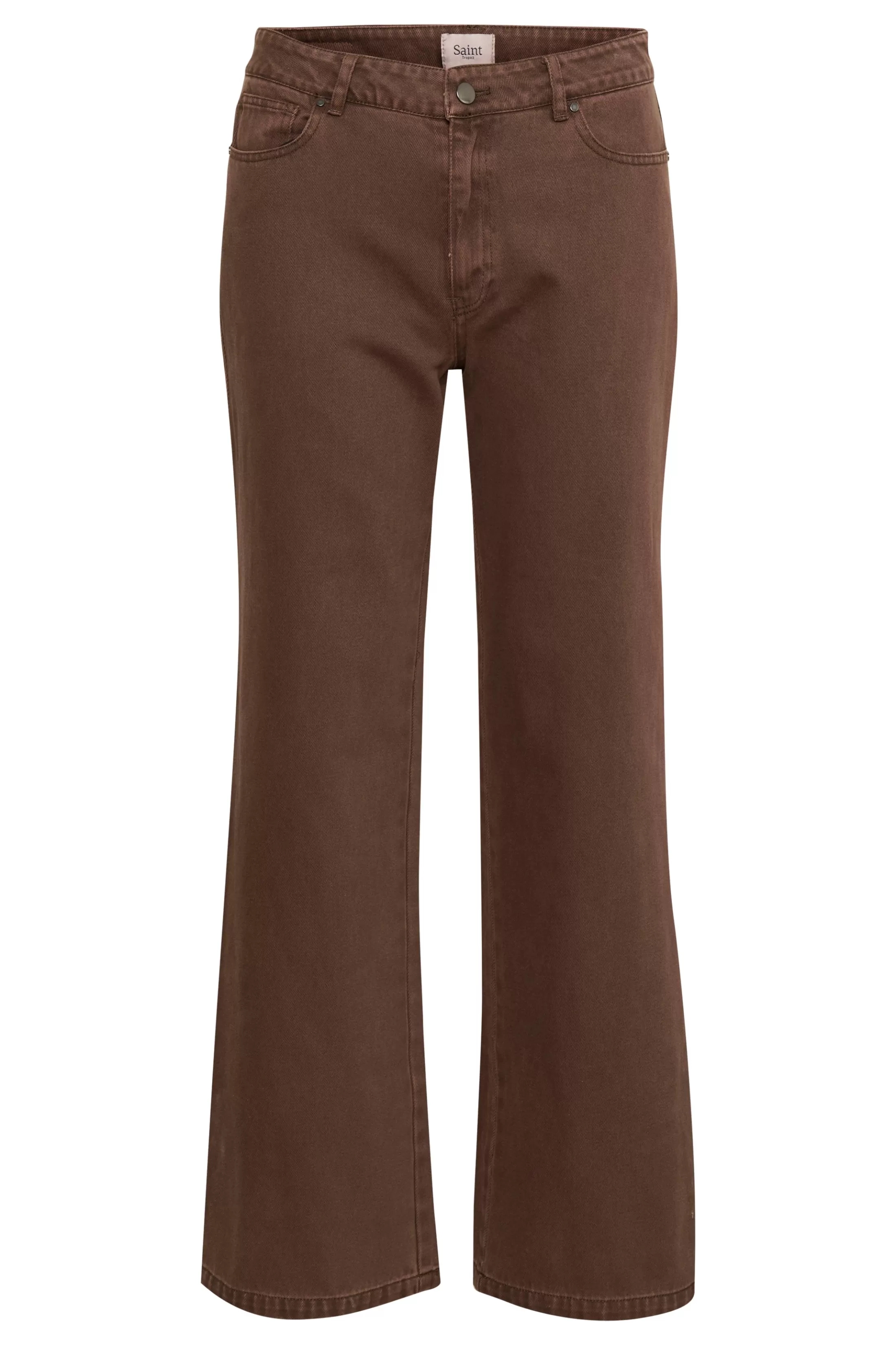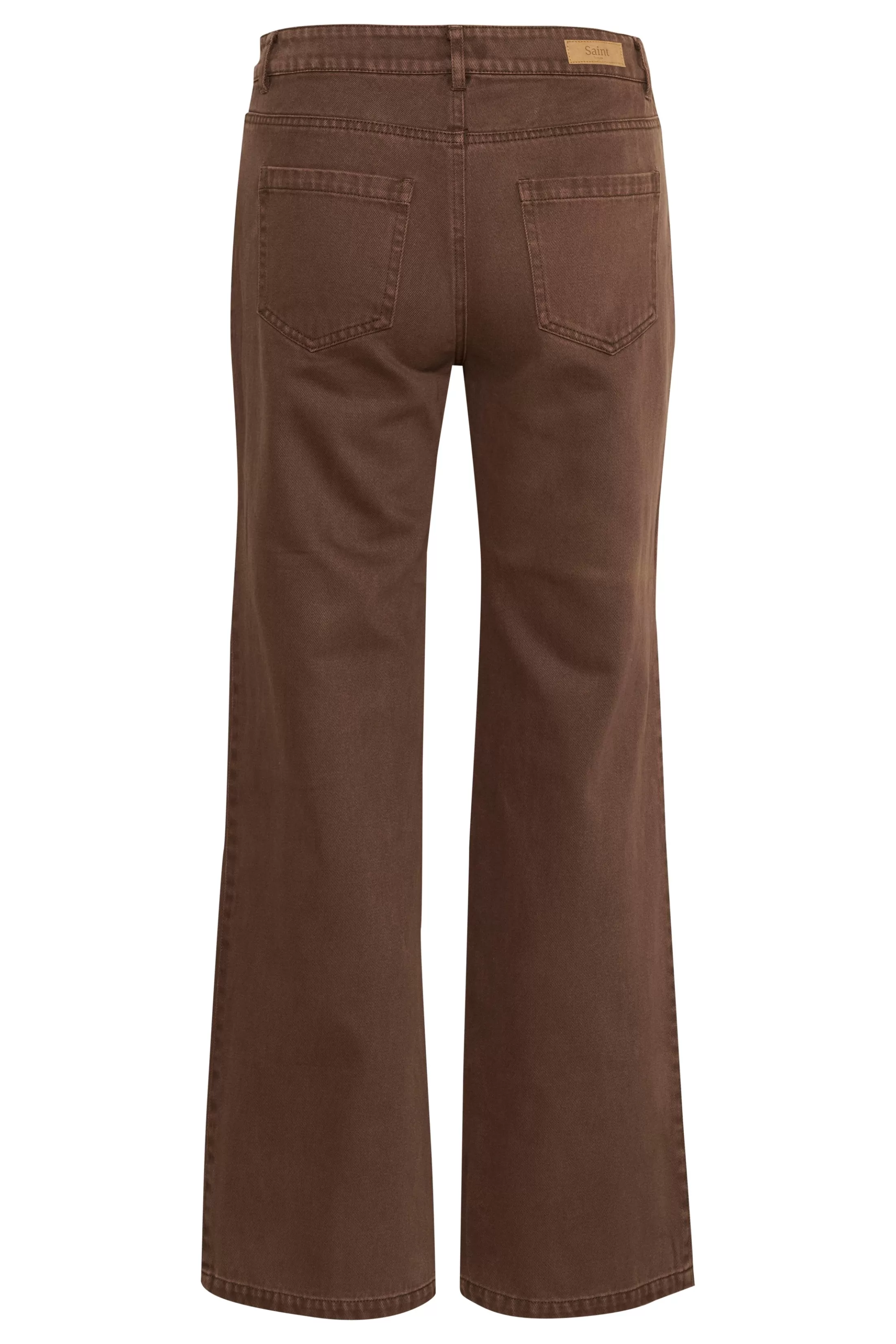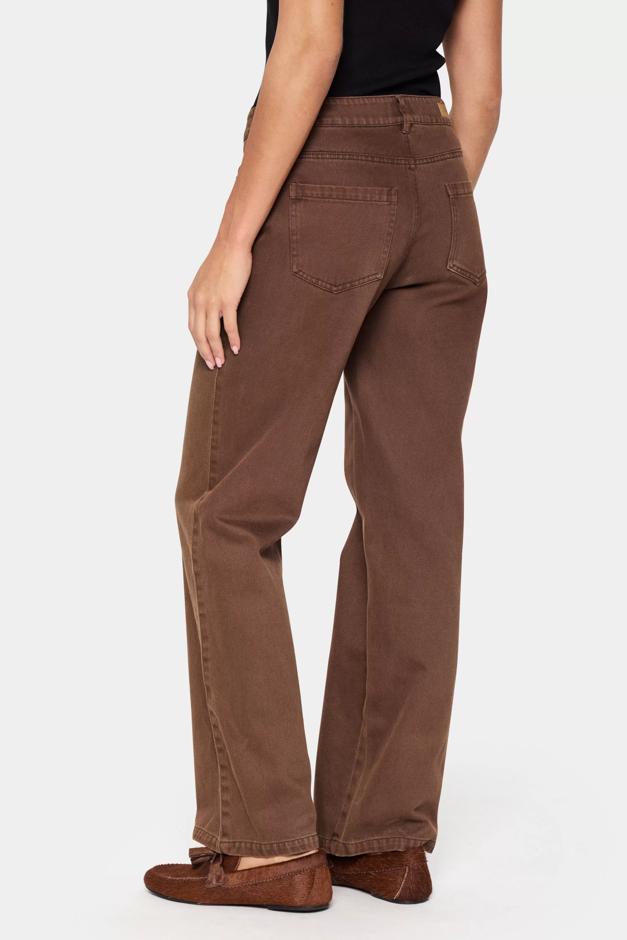 Disse højtaljede jeans har et lige snit og et klassisk femlomme-design, der giver en tidløs og alsidig stil. Den let udvidede kant tilføjer et subtilt retropræg, perfekt til både afslappede og mere formelle looks.