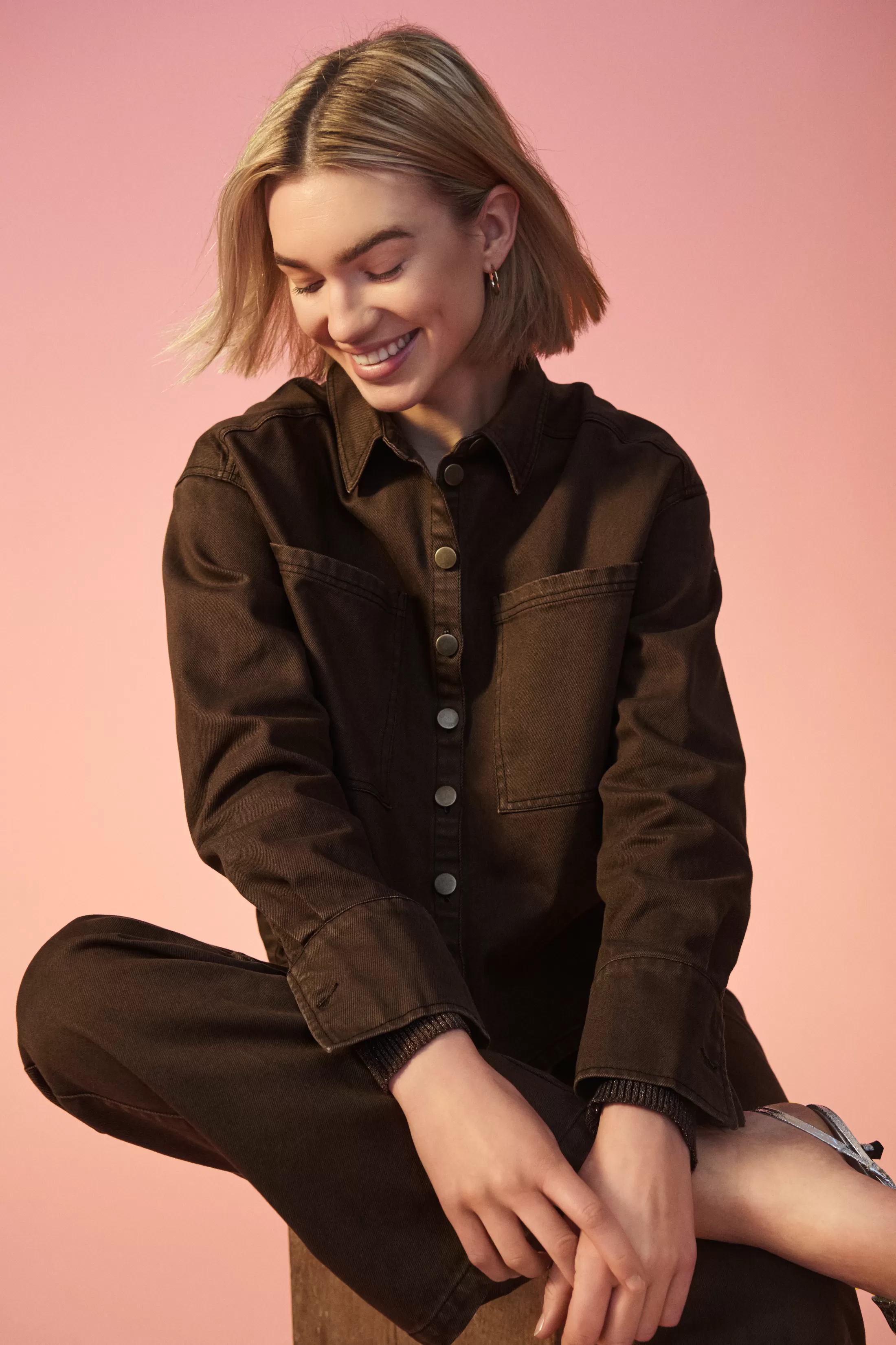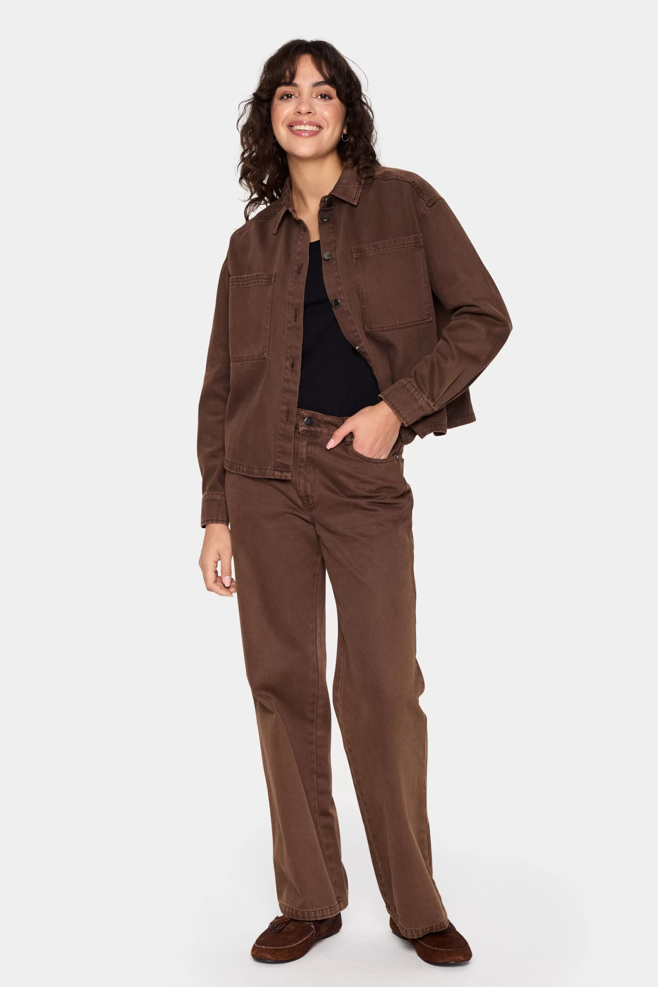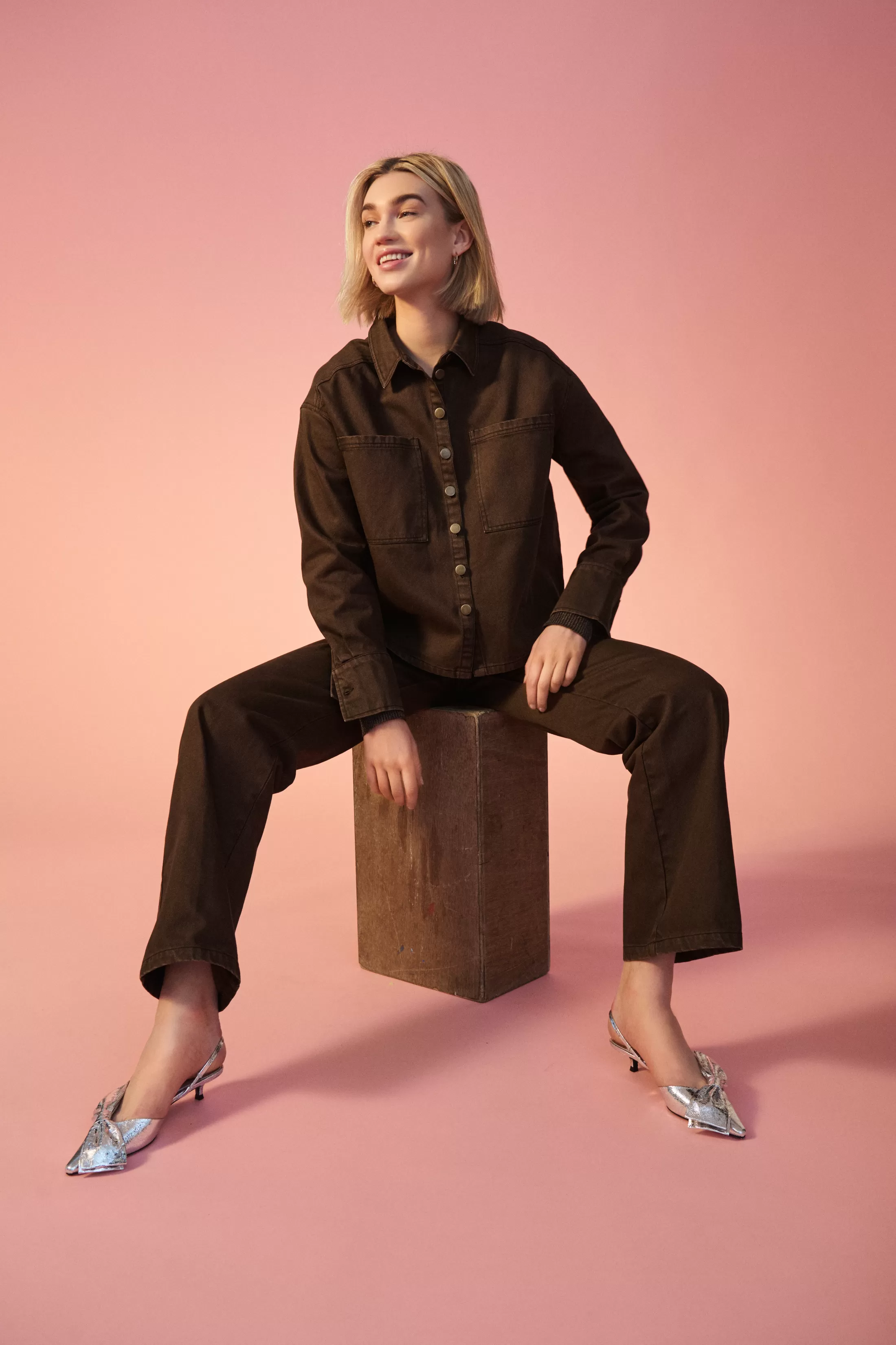 Disse højtaljede jeans har et lige snit og et klassisk femlomme-design, der giver en tidløs og alsidig stil. Den let udvidede kant tilføjer et subtilt retropræg, perfekt til både afslappede og mere formelle looks.