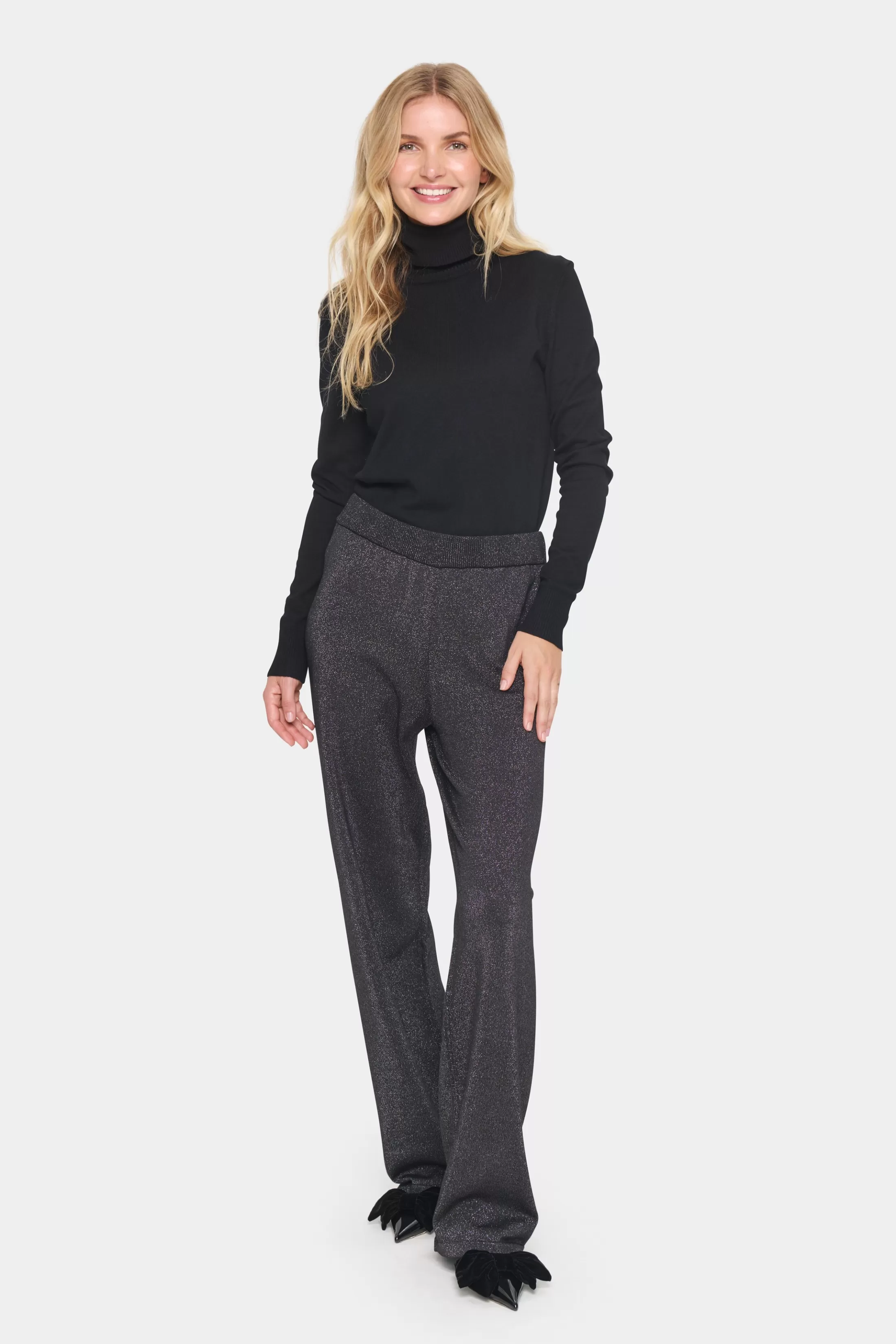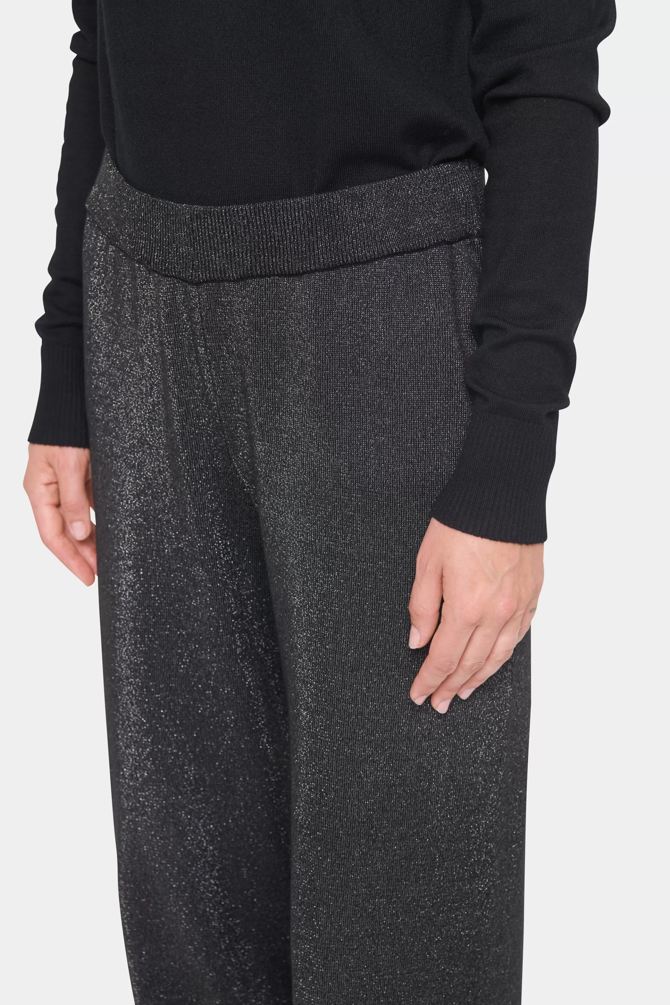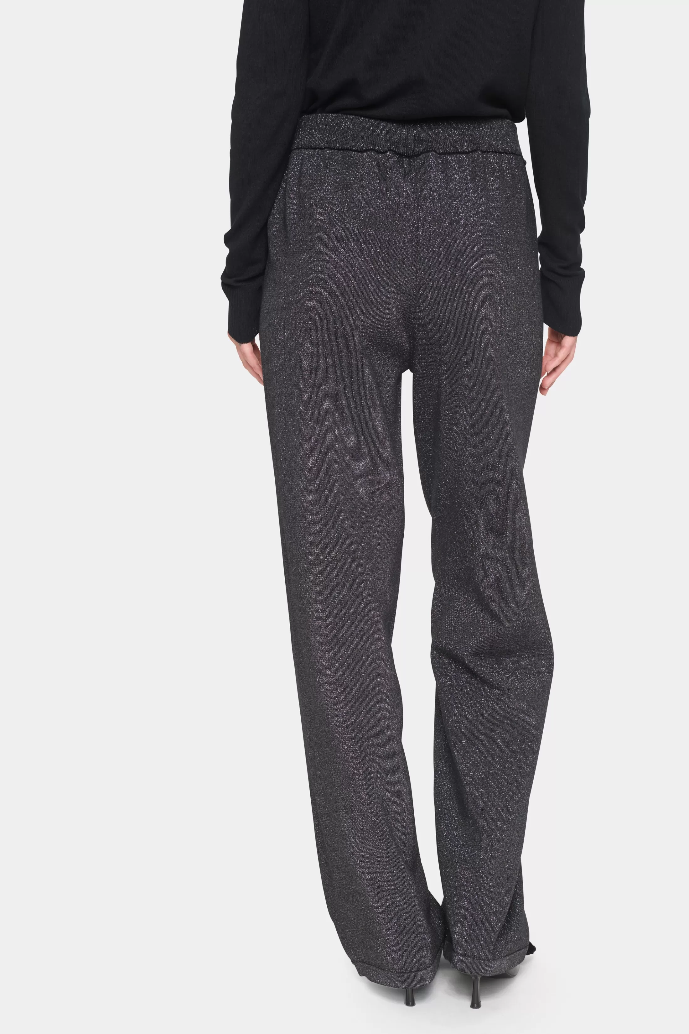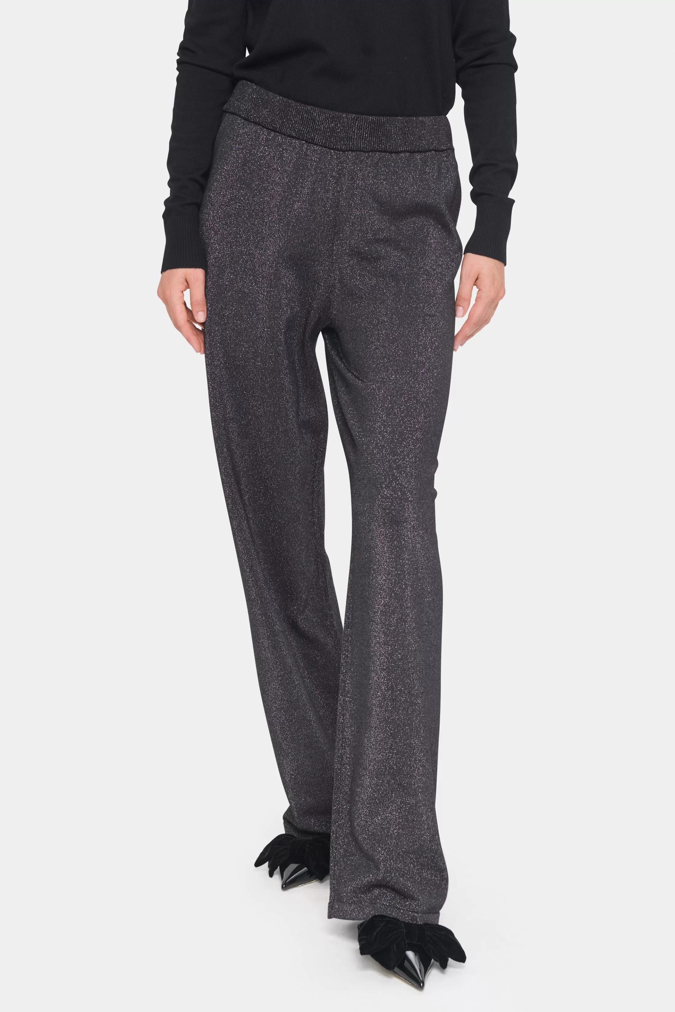 Disse skinnende bukser har et bredt bensnit med en blød metallisk finish. Den elastiske linning sikrer komfort, hvilket gør dem til et stilfuldt, men afslappet valg til både dag- og aftenlooks.