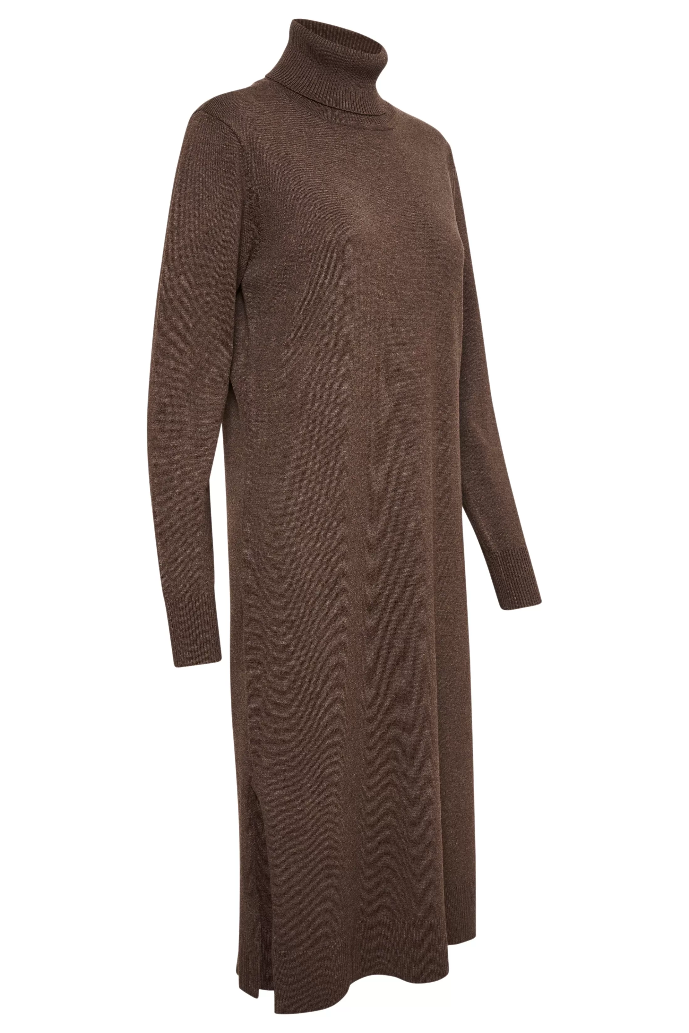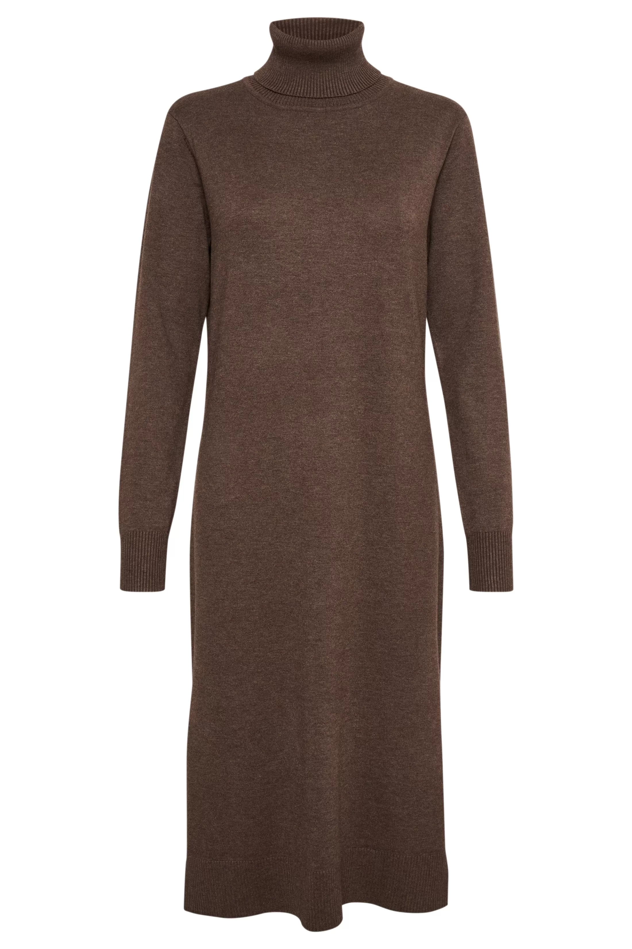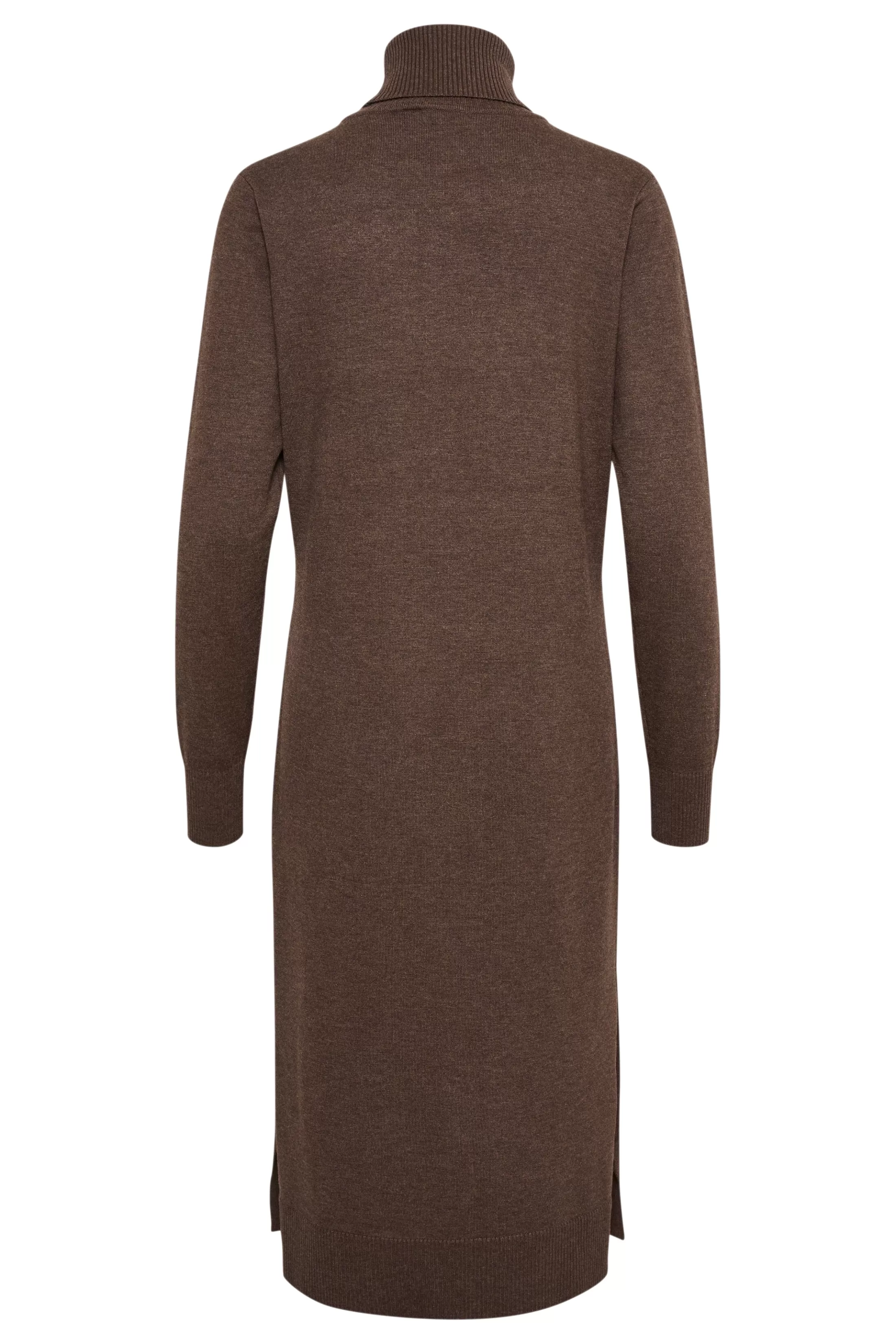 Denne strikkjole har en klassisk rullekrave, ribmanchetter og en slids i siden for ekstra bevægelse og stil. Den giver varme og komfort med en smigrende pasform, hvilket gør den alsidig til både afslappede og finere anledninger.nnModellen er iført en str. M.