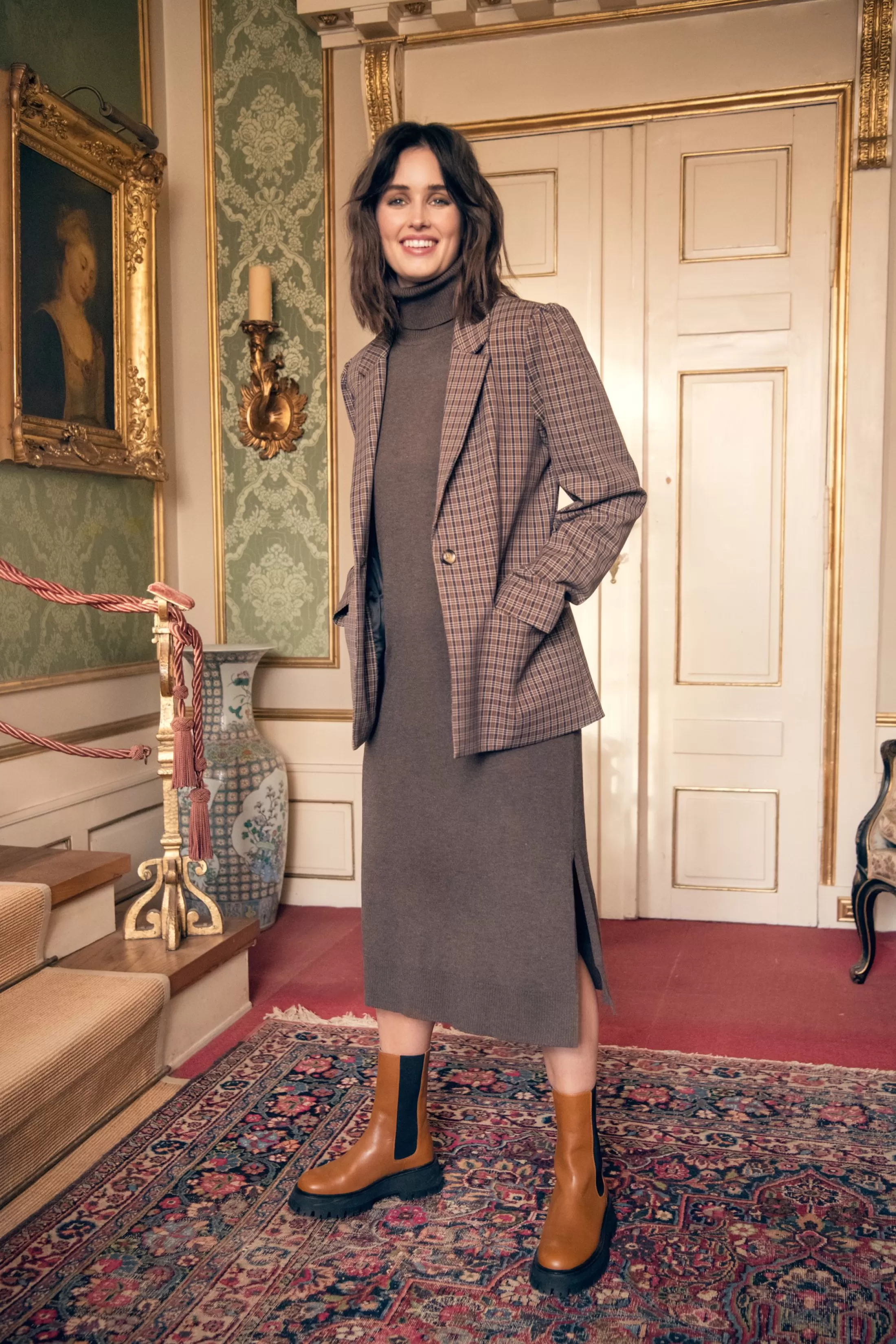 Denne strikkjole har en klassisk rullekrave, ribmanchetter og en slids i siden for ekstra bevægelse og stil. Den giver …