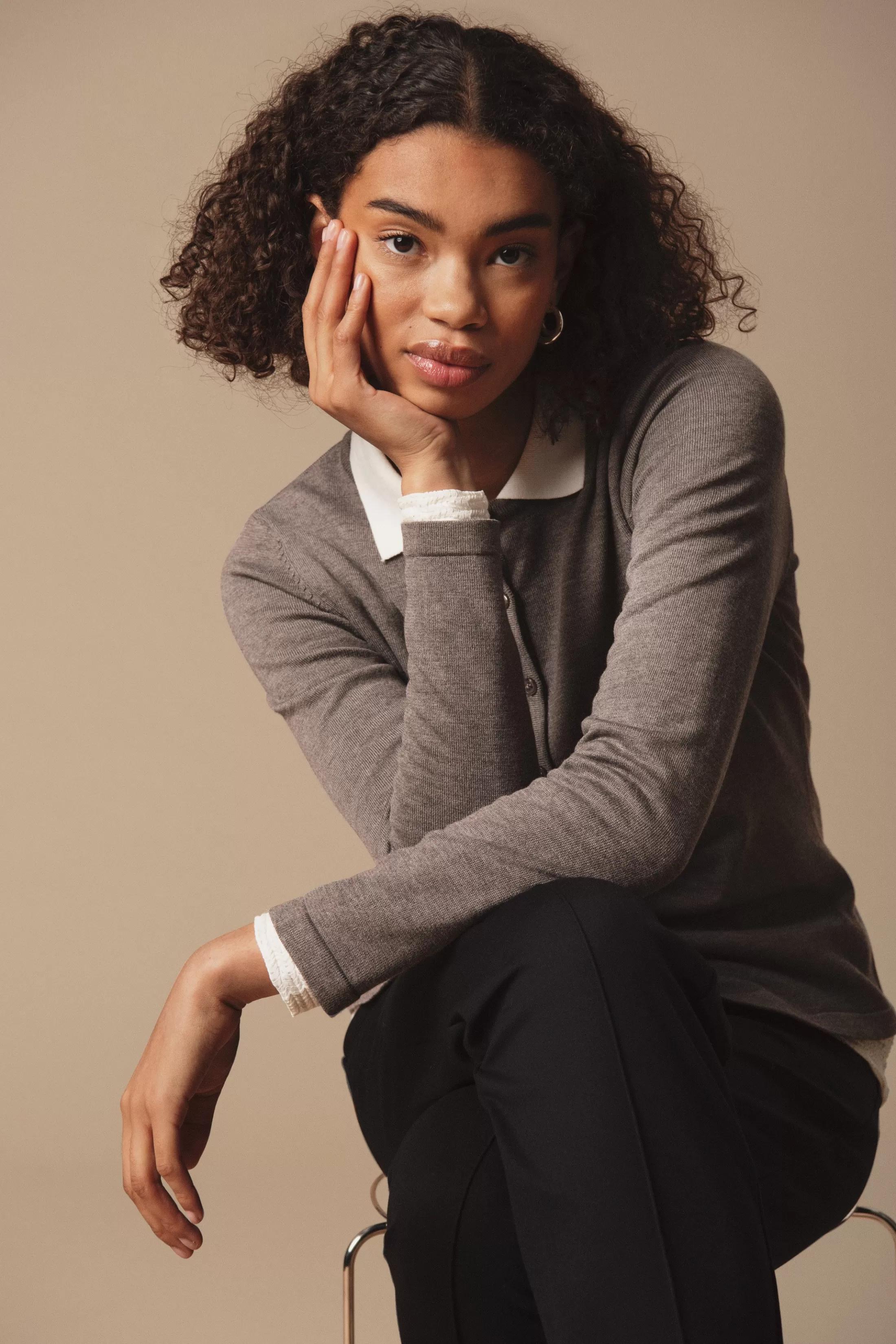 Strikcardigan i et regulært fit med rund hals, lange ærmer, en synlig knaplukning samt ribkant i hals, på ærmer og forneden.