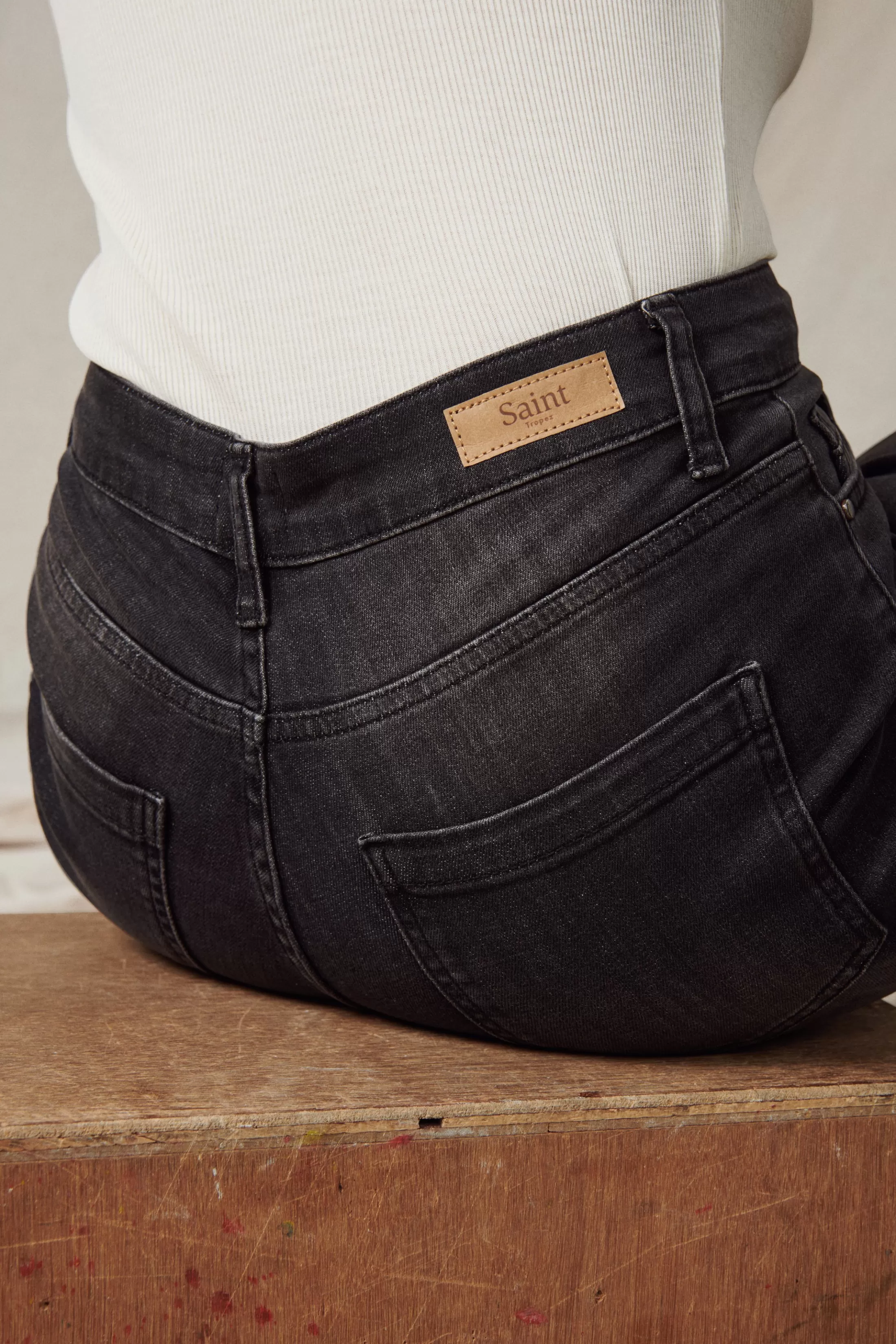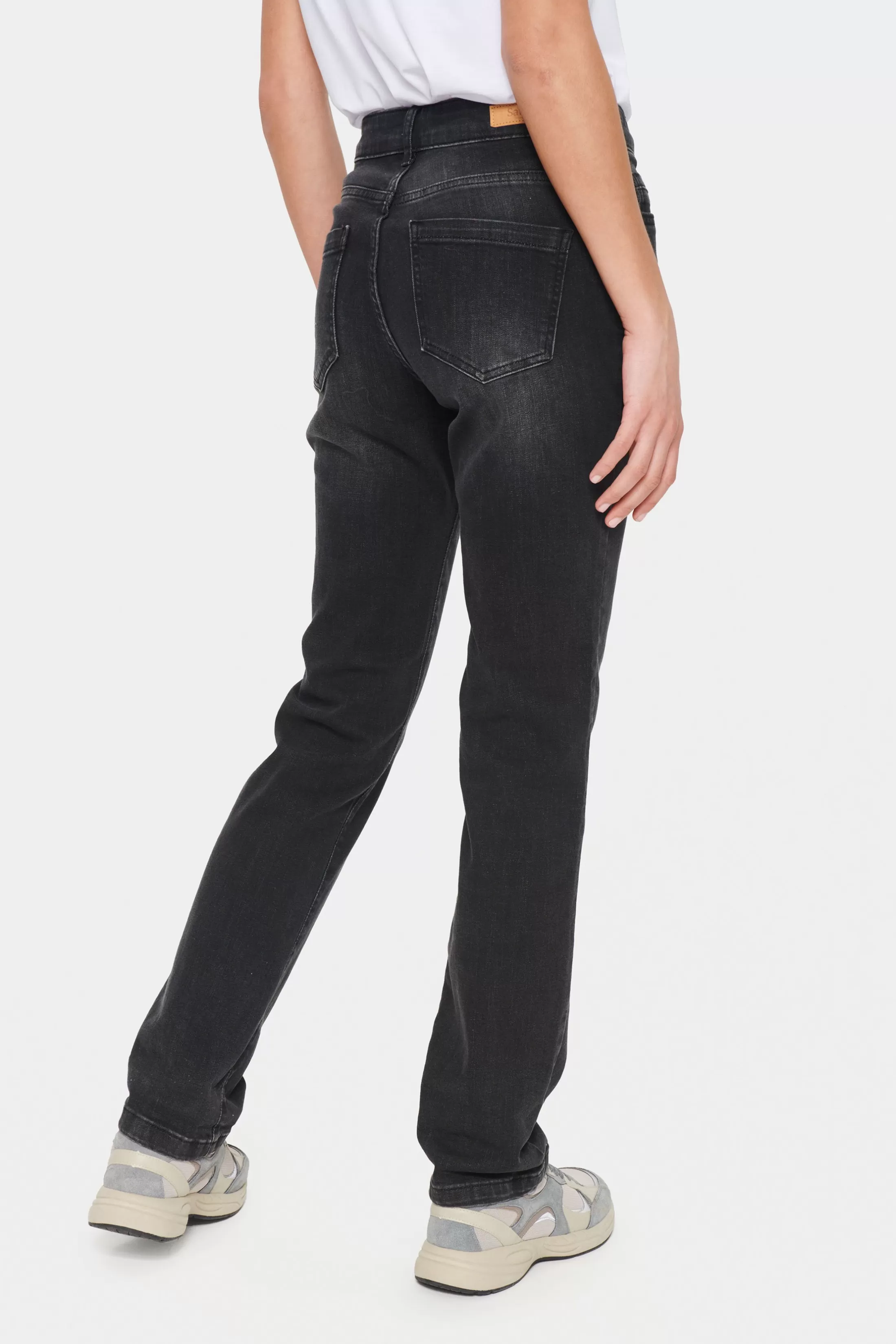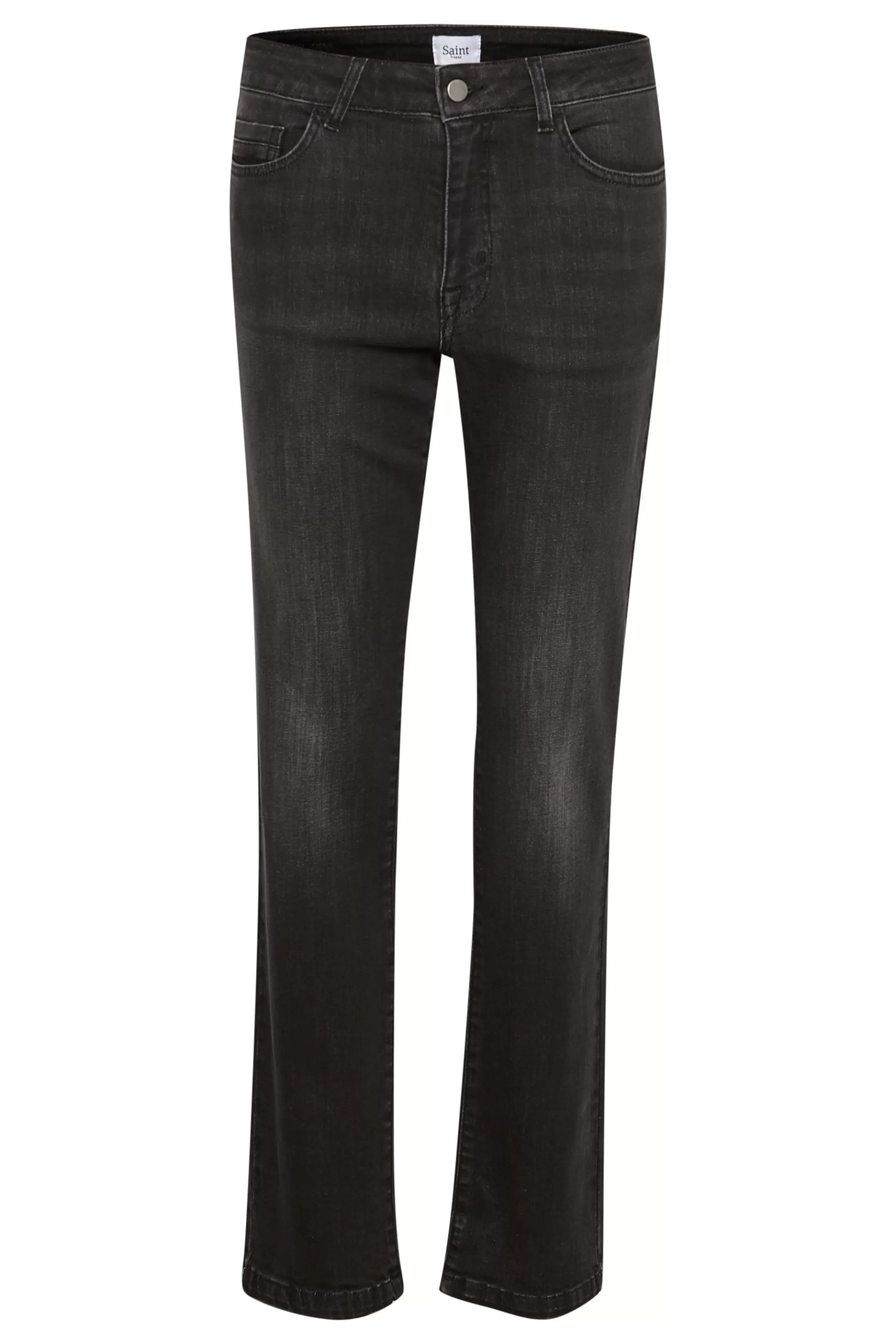 Denimbuks med fast linning, bæltestropper samt knap og lynlåslukning. Buksen har 5 lommer, en regulær pasform samt en almindelig talje.