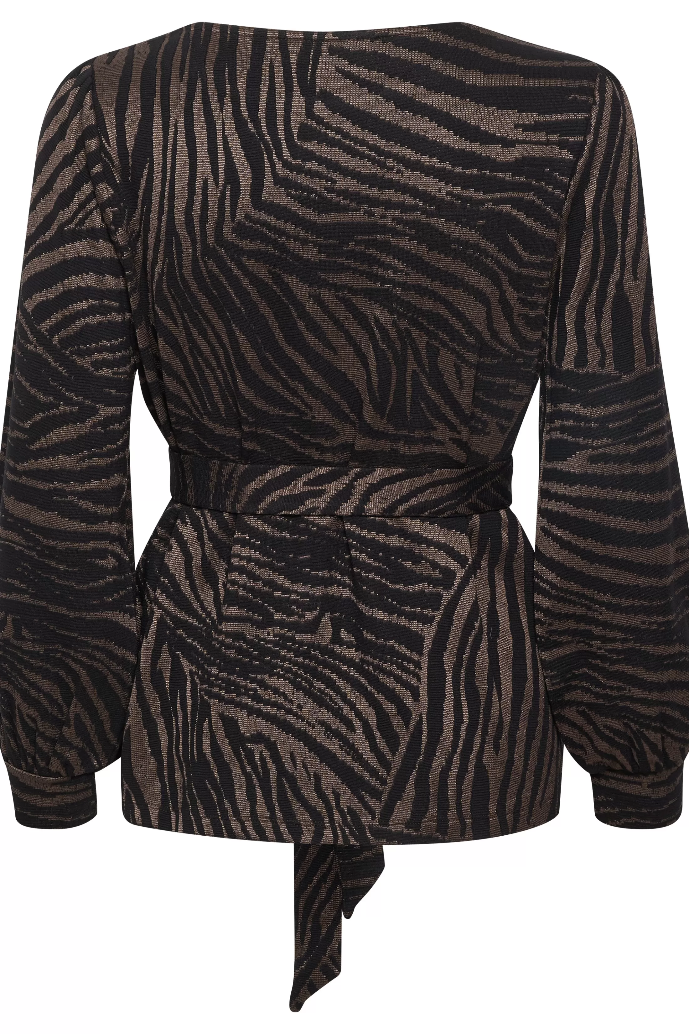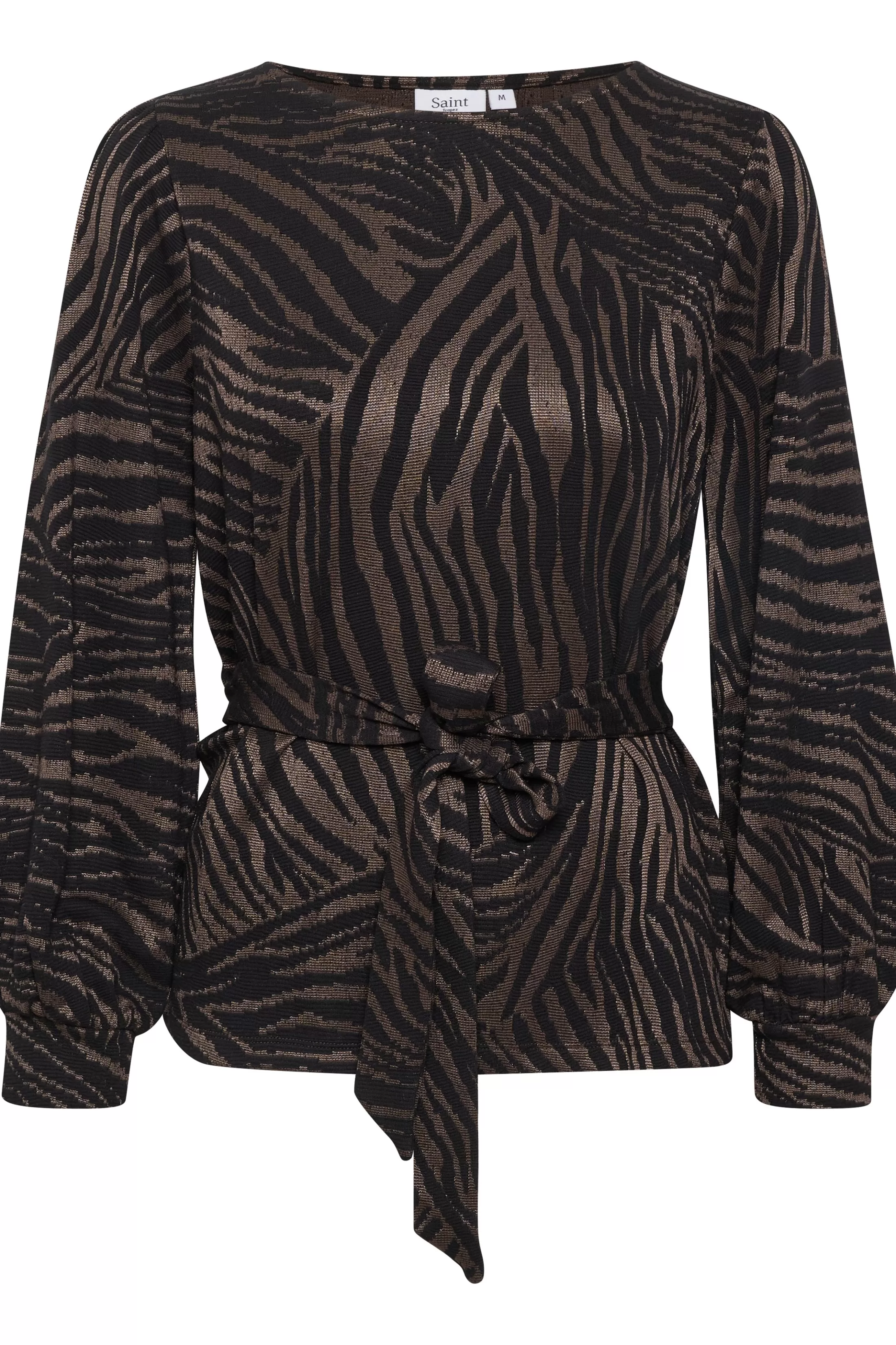 Bluse med lange ballonærmer, rund hals samt et aftageligt bindebånd i taljen. Blusen er i vævet jersey kvalitet og ha…