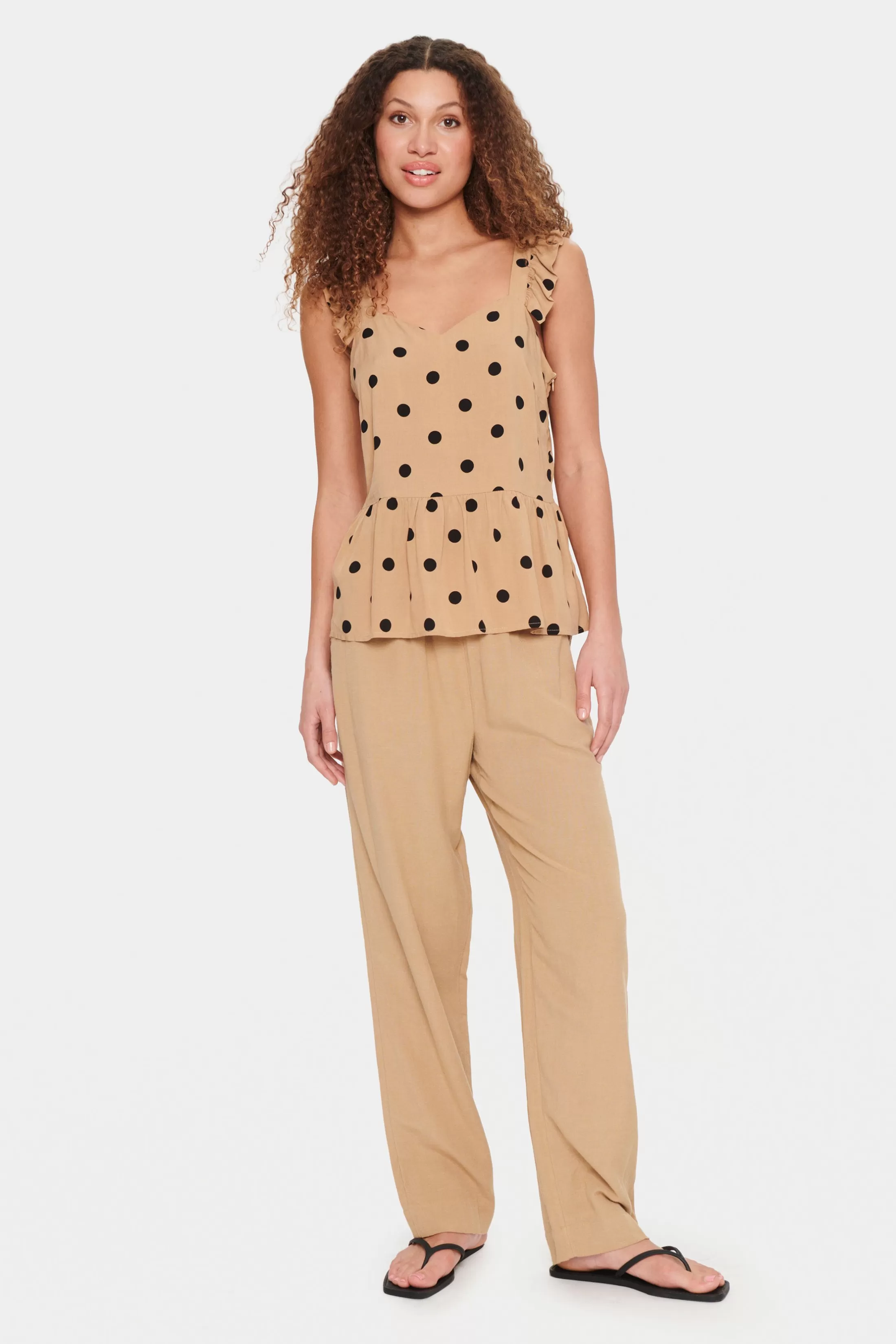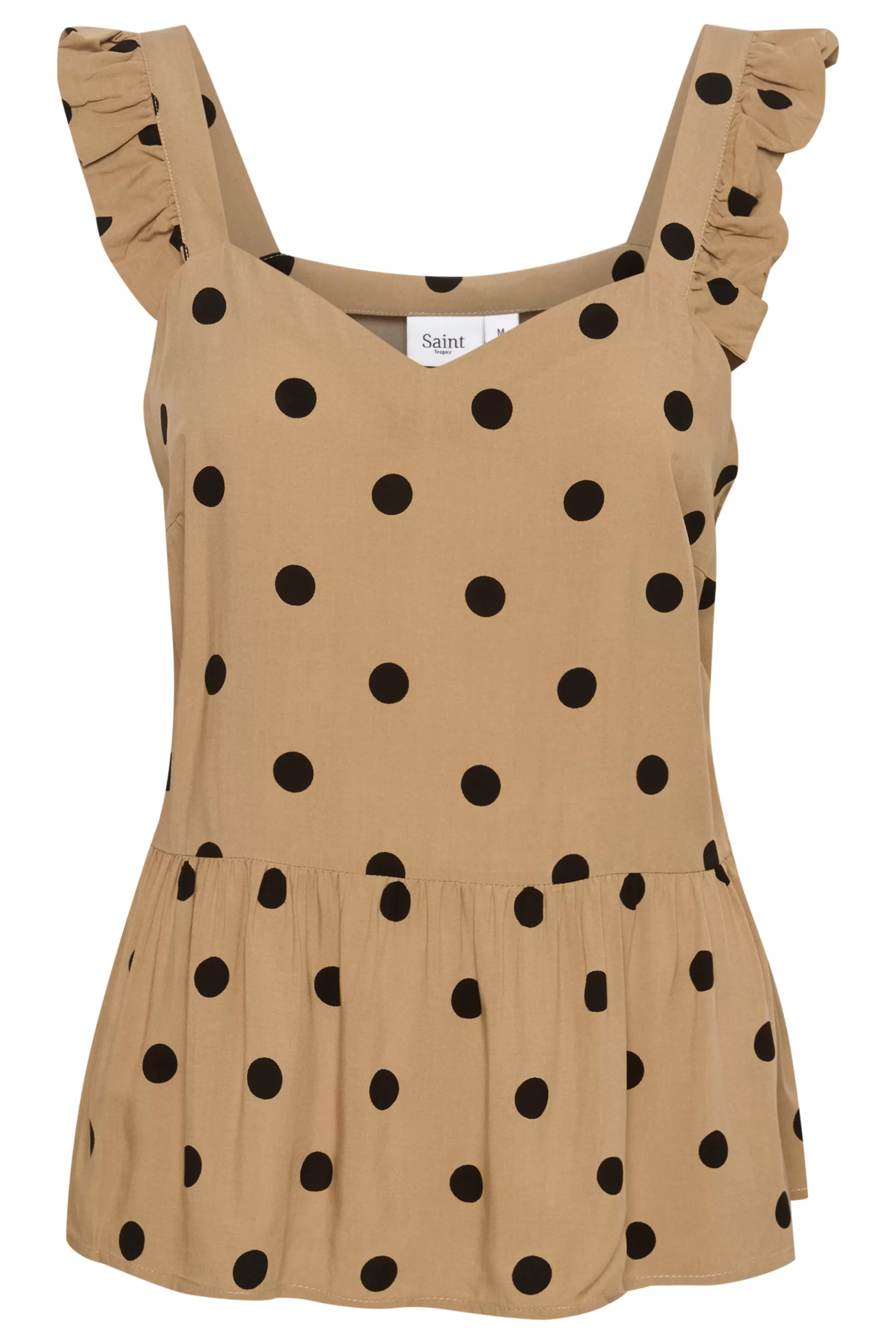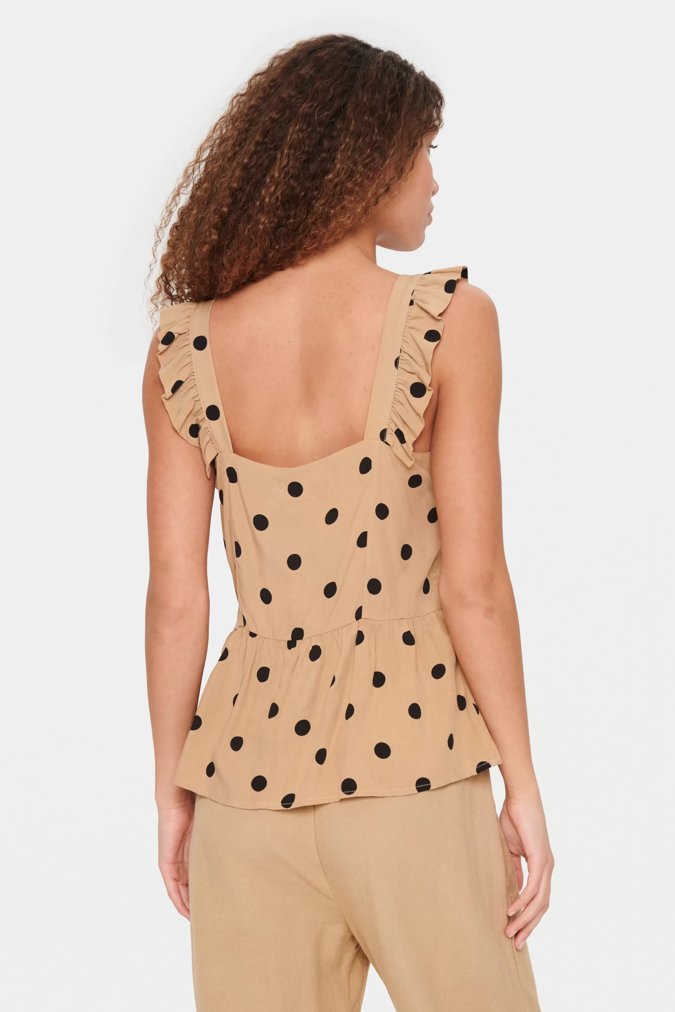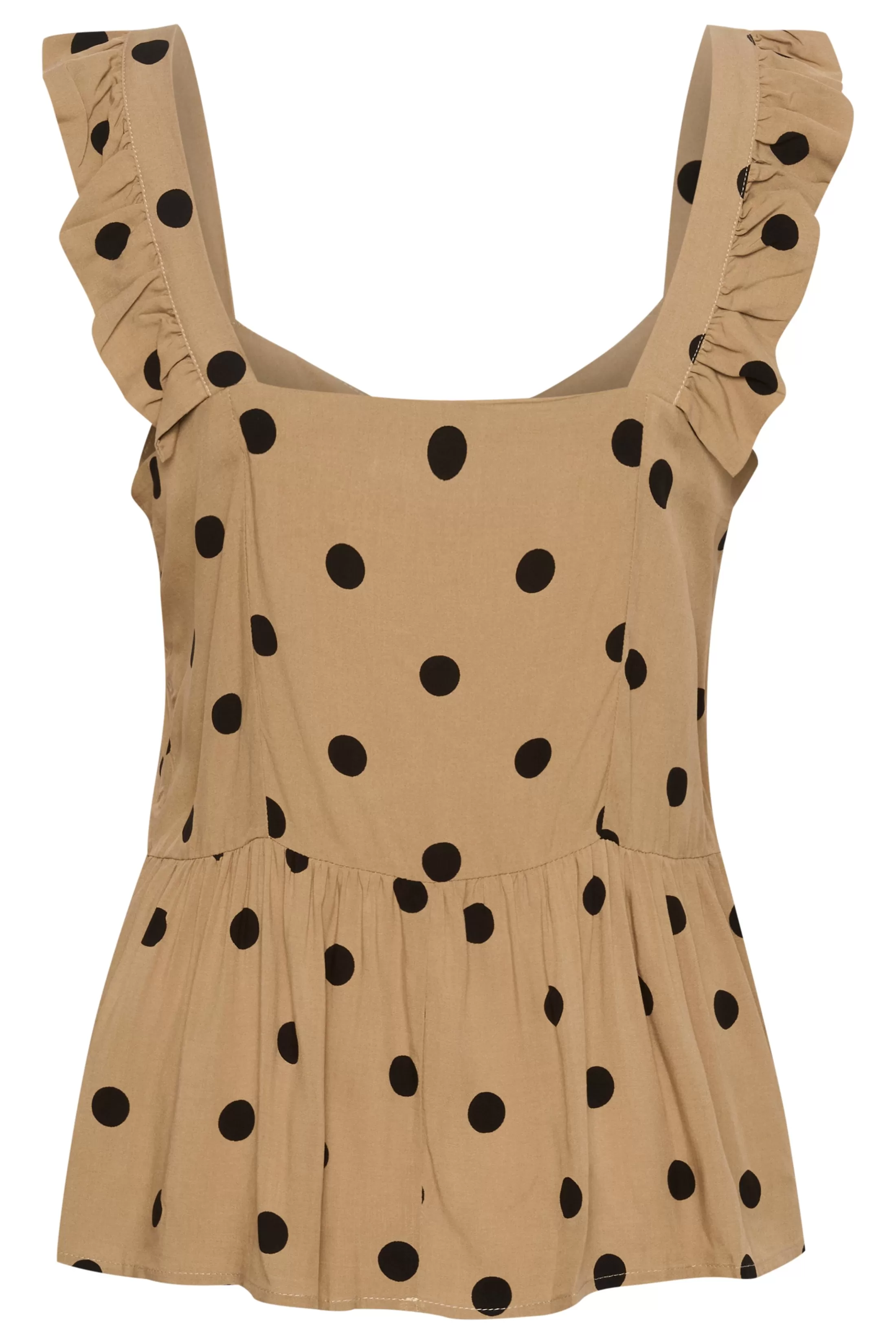 Peplum top med en hjerteformet halsudskæring samt stropper med flæsekant. Toppen er i et regulært fit og er i en let vævet kvalitet. nnClara er 178 cm og er iført en str. M.